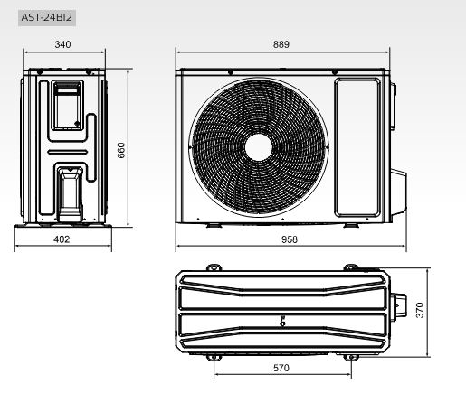 | Rozstaw otworów montażowych jedn. zewn. | 570 x 370 mm |