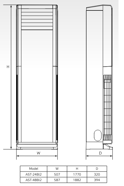 | Długość x wysokość x szerokość jedn. wewn. | 320 x 1770 x 507 mm |