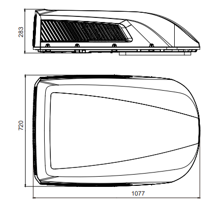 | Długość x wysokość x szerokość część zewn. | 1077 x 283 x 720 mm |