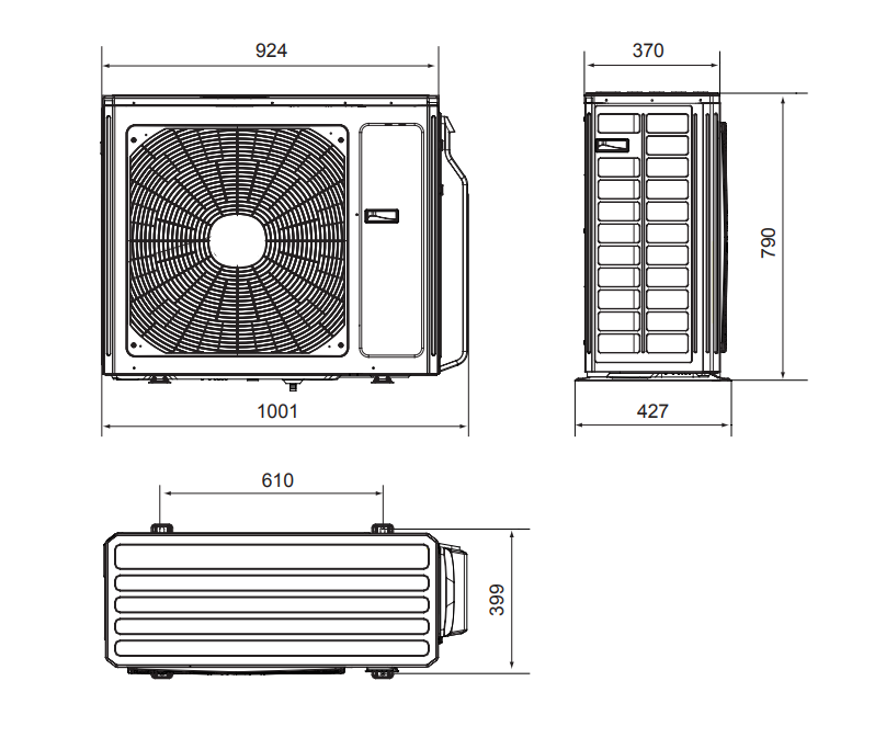 | Rozstaw otworów montażowych jedn. zewn. | 610 x 399 mm |