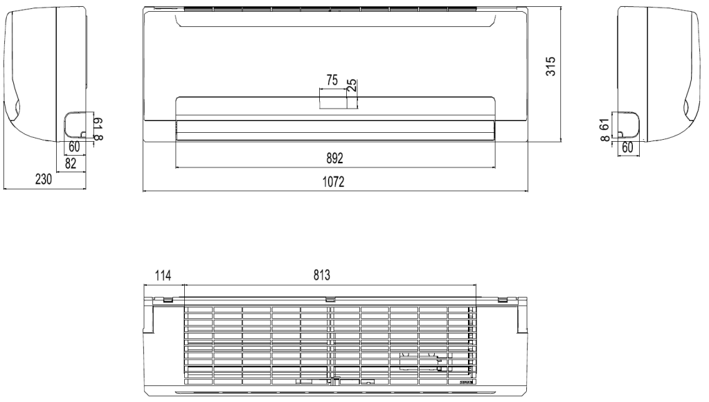 | Długość x wysokość x szerokość | 1072 x 315 x 230 mm |
