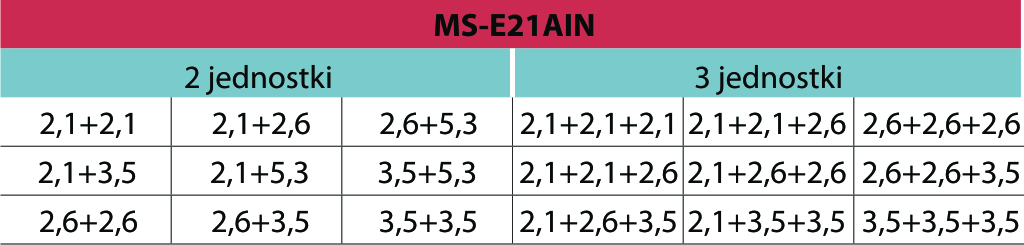 | Minimalna ilość jednostek wewnętrznych | 2 |