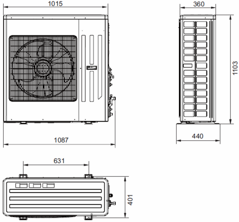 | Rozstaw otworów montażowych jedn. zewn. | 631 x 401 mm |