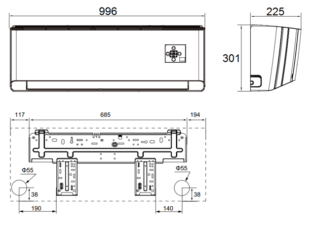 | Długość x wysokość x szerokość | 996 x 301 x 225 mm |