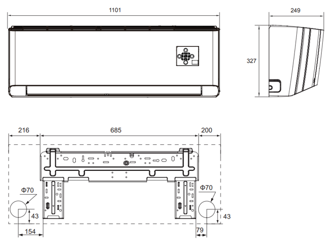 | Poziom ciśnienia akustycznego (Grzanie/Chłodzenie) | 49 / 47 / 44 / 42 / 40 / 38 / 36 dB(A) |