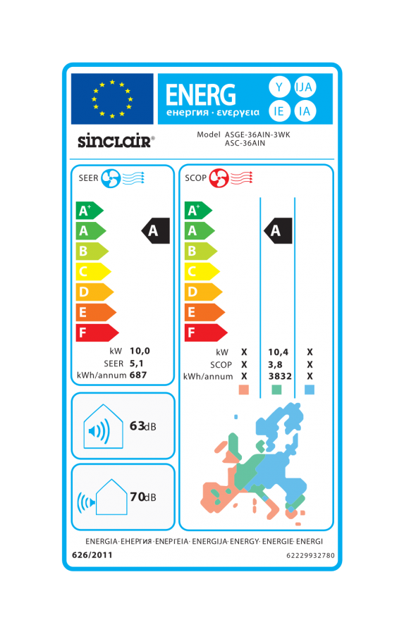 | Klasa efektywności energetycznej w trybie chłodzenia / grzania (umiarkowany) | A++ / A+ |