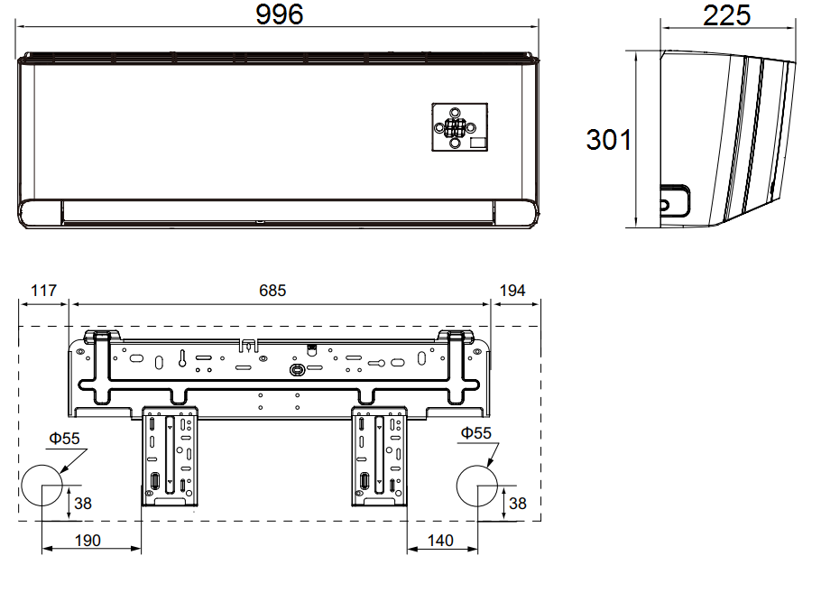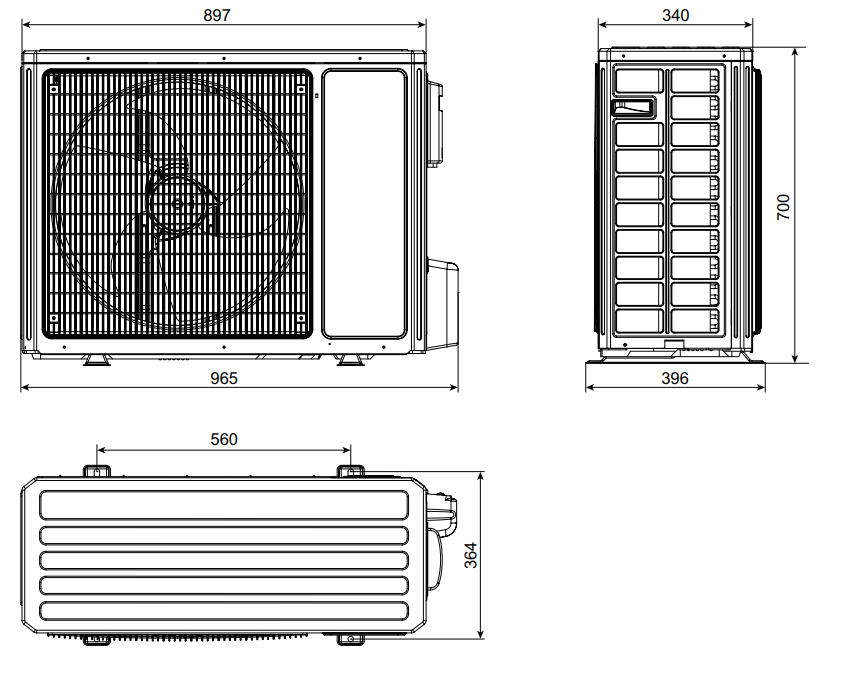 | Rozstaw otworów montażowych jedn. zewn. | 560 x 364 mm |