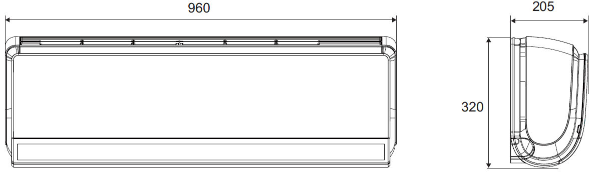 | Długość x wysokość x szerokość jedn. wewn. | 960 x 320 x 205 mm |