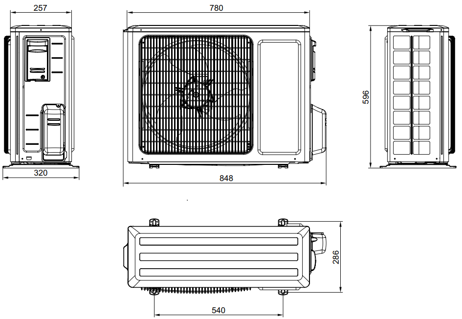 | Rozstaw otworów montażowych jedn. zewn. | 540 x 286 mm |