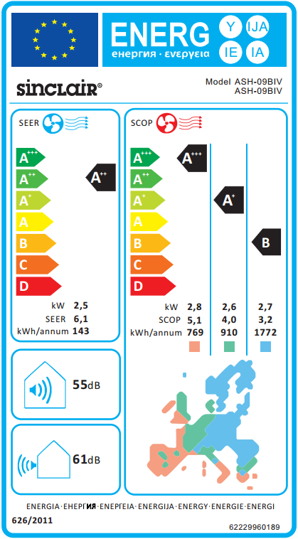 | Klasa efektywności energetycznej w trybie chłodzenia / grzania (umiarkowany) | A++ / A+ |