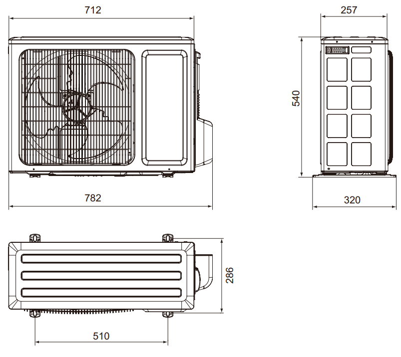 | Rozstaw otworów montażowych jedn. zewn. | 510 x 286 mm |