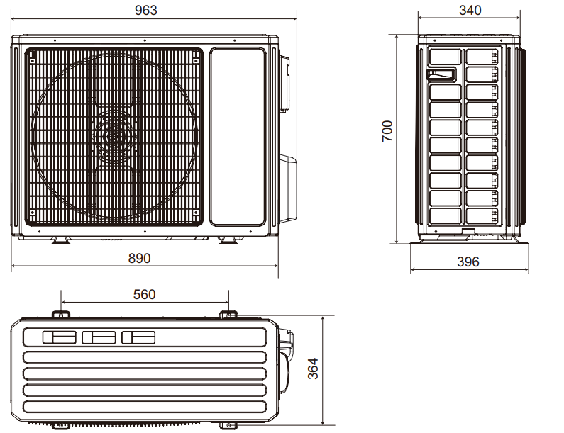 | Rozstaw otworów montażowych jedn. zewn. | 560 x 364 mm |