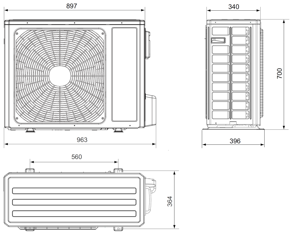 | Rozstaw otworów montażowych jedn. zewn. | 560 x 364 mm |