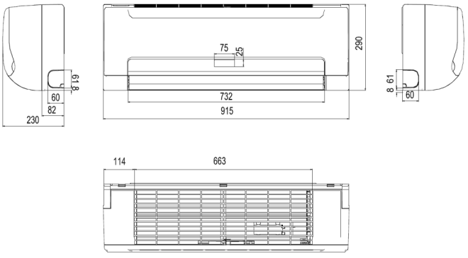 | Usytuowanie | Króciec odpływu skroplin znajduje się z prawej strony urządzenia |