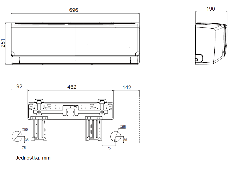 | Długość x wysokość x szerokość | 696 x 251 x 190 mm |