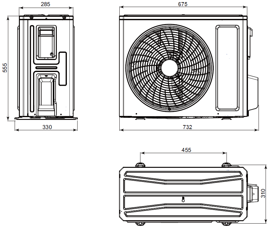 | Długość x wysokość x szerokość jedn. zewn. | 732 x 555 x 330 mm |