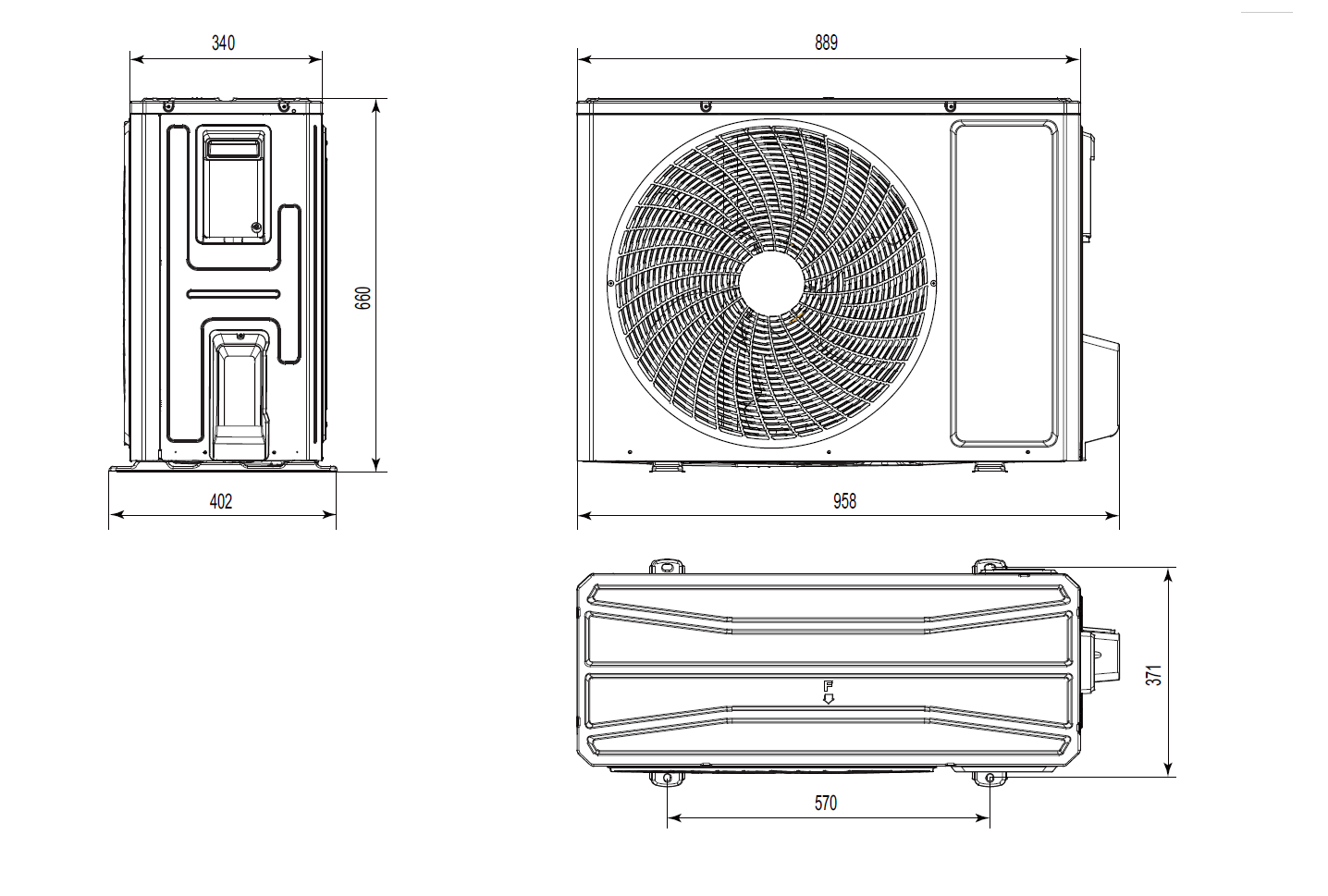 | Rozstaw otworów montażowych jedn. zewn. | 570 x 371 mm |